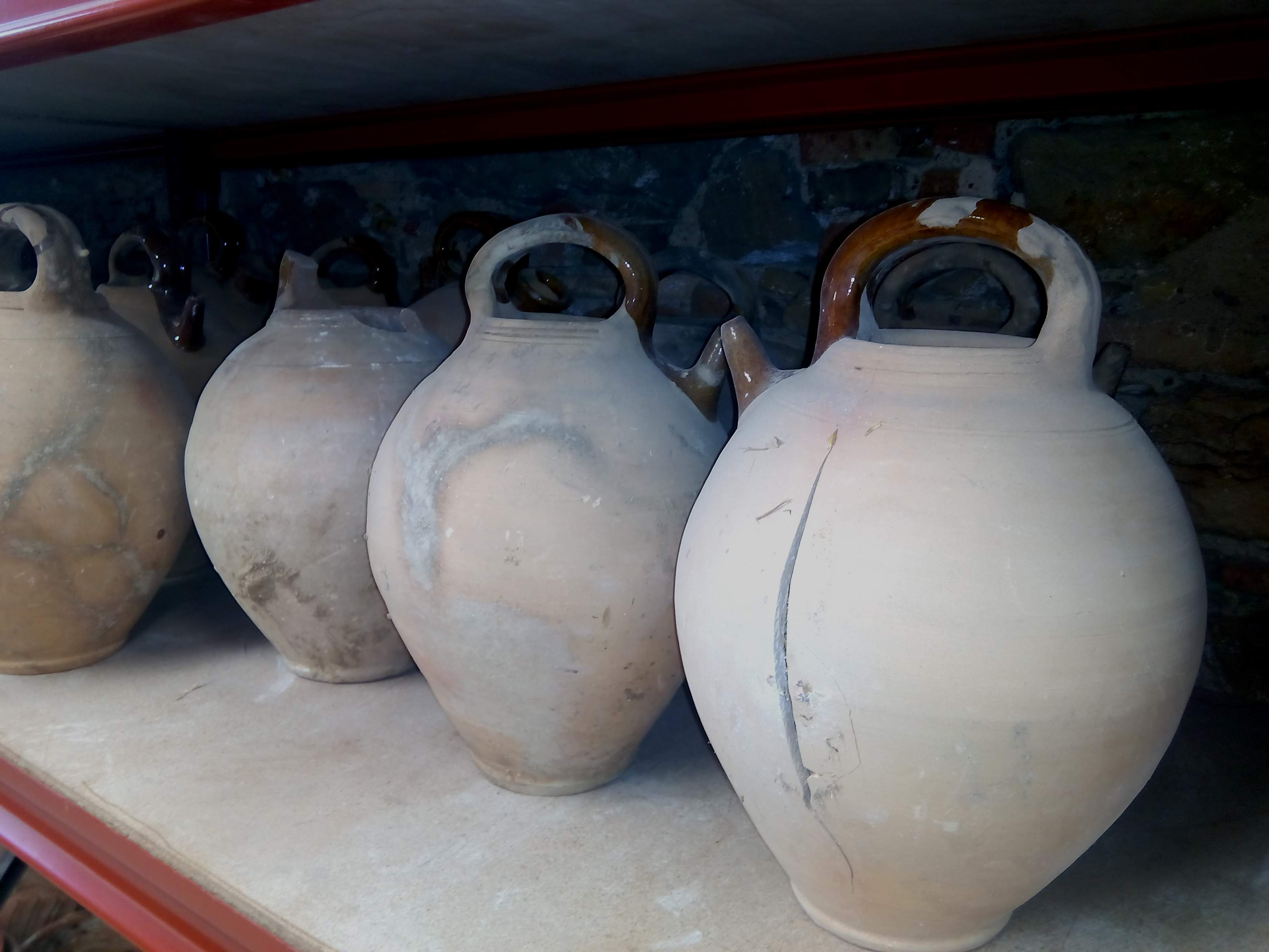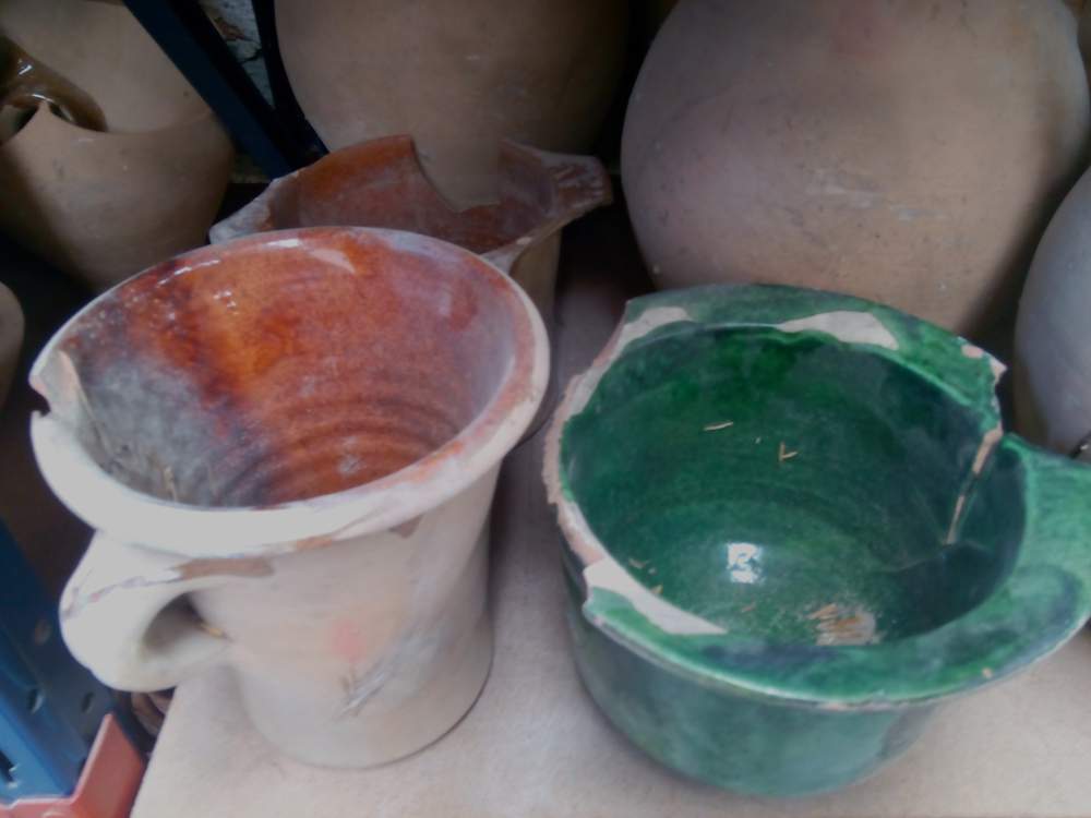 El conjunt de ceràmica que s’ha localitzat es caracteritza per la seva heterogeneïtat tipològica, lligada a una mateixa procedència. Així, la majoria són atuells de l’àmbit domèstic que presenten defectes que es varen produir durant la cuita o en el moment de desenfornar, i que els inutilitzen pel seu ús original. També trobem alguns objectes trencats o desgastats per l’ús. Hi trobem 40 atuells de diferents tipus: càntirs, poals, barrals, orinals, plats de pagès i una conca.