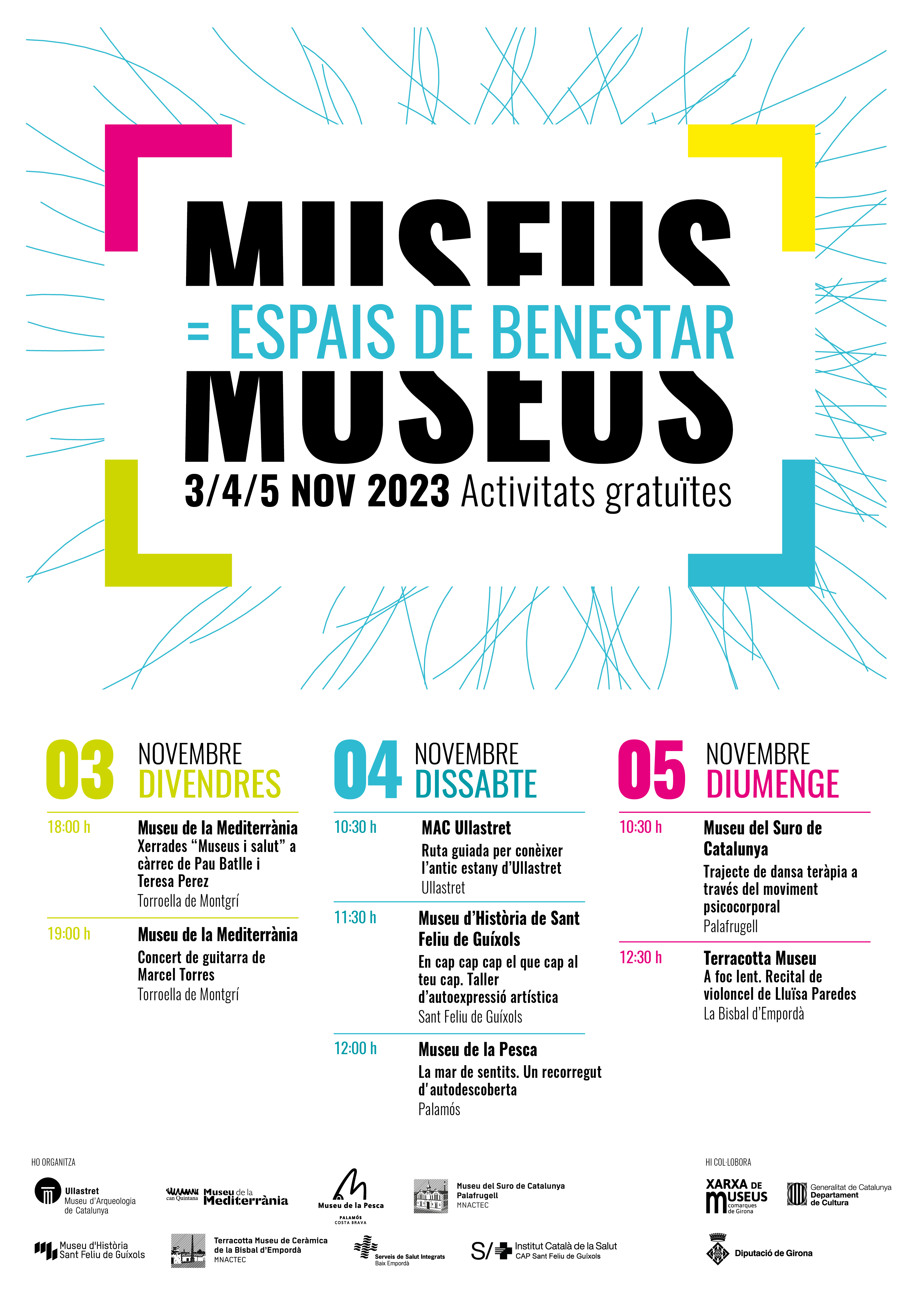 És per això que durant el primer cap de setmana de novembre, durant els dies 3, 4 i 5 de novembre, organitzem un conjunt d'activitats gratuïtes als museus. Totes les activitats toquen temes amplis com poden ser recitals i concerts, visites guiades o tallers com dansateràpia, relacionats amb l’art o les emocions.