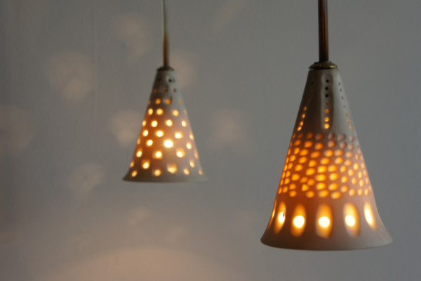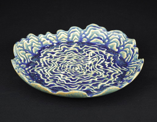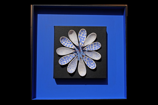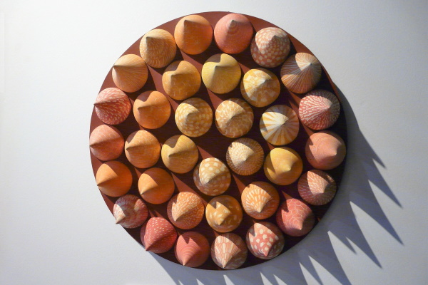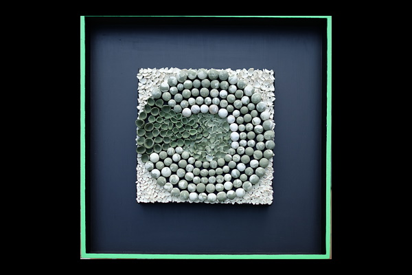 Medusas: porcelana blanca y coloreada con la técnica de neriage y moldurada con la huella de los dedos de la artista.